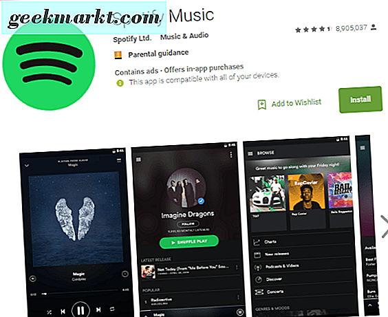 Spotify Music adalah aplikasi musik terbaik lainnya untuk Android dan perangkat lainnya. Ini juga memiliki jutaan trek dan pengguna dan menawarkan akun gratis dan premium. Anda tidak dapat mengunduh musik dengan akun gratis tetapi Anda dapat melakukan streaming ke aplikasi atau browser Anda. Beli Spotify Premium dan Anda dapat mengunduh lagu ke perangkat Anda untuk mendengarkan offline.