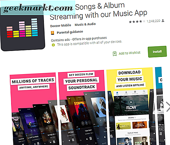 Deezer adalah rekomendasi terakhir saya sebagai alternatif untuk pengunduh musik GTunes. Ini adalah layanan musik seperti yang lainnya dengan aplikasi apik, jutaan trek, campuran, dan daftar putar. Ia juga menawarkan akun gratis yang dapat mengalirkan musik dan akun premium yang dapat mengunduhnya untuk didengarkan secara offline.