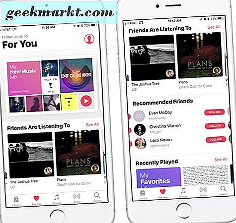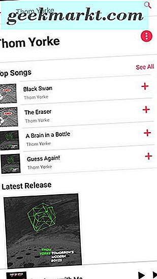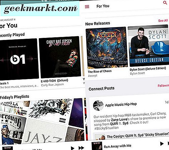 Aplikasi terbuka di halaman "Untuk Anda", sangat mirip di hampir setiap jalan ke halaman "Beranda" yang telah kami lihat di Spotify. Di sini, Anda akan melihat album, daftar putar untuk hari ini, saran album, “daftar sorotan seniman, ” dan tentu saja, rilis baru yang baru-baru ini - meskipun perlu dicatat bahwa salah satu dari dua rilis baru yang disorot adalah album Thom Yorke Tomorrow's Modern Kotak, awalnya dirilis pada tahun 2014 dan, mungkin, cukup baru untuk Apple Music, bukan hal baru di dunia musik secara keseluruhan. Ikon menu (lagi, di sepanjang bagian bawah aplikasi di iOS atau di panel geser samping di Android) memungkinkan Anda mengakses perpustakaan pribadi Anda, menelusuri musik, dan mengakses bagian Radio di Apple Music, bersama dengan opsi pengaturan . Perpustakaan, khususnya, menyinkronkan setiap dan semua pembelian iTunes dari perpustakaan Anda ke ponsel Anda, membuatnya mudah untuk mendengarkan perpustakaan Anda selama bertahun-tahun tanpa harus menyinkronkan perangkat Anda (atau, di Android, melakukan sejumlah solusi untuk mengakses musik Anda ).