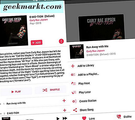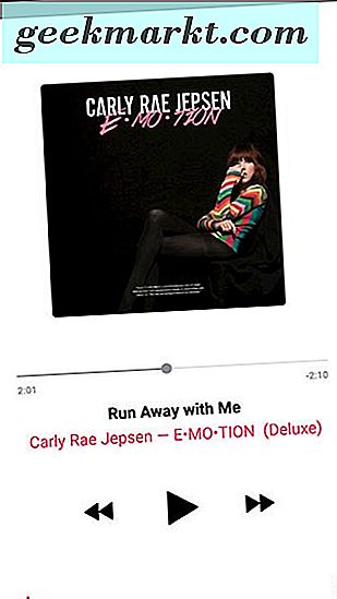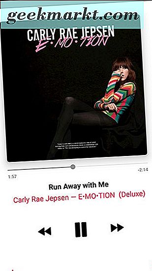 Layar pemutaran hampir identik pada iOS dan Android, dengan latar belakang putih terang, layar besar dari seni album untuk masing-masing lagu Anda, dan sorotan merah muda yang sama seperti yang kami sebutkan sebelumnya. Layar Now Playing jauh lebih bersih daripada layar pemutaran Spotify sendiri, dengan batas pada tombol yang disertakan. Setiap bagian dari artwork album meminimalkan sedikit ketika sebuah lagu dimainkan, membuat efek yang bagus di layar. Sementara Spotify menyertakan pratinjau kecil di sebelah kanan dan kiri dari seni album yang akan datang atau sebelumnya, Apple Music menjaga layar pemutaran mereka terfokus pada satu lagu, dan jika kita jujur, itu membuat aplikasi terlihat jauh lebih bersih. Layar dapat diminimalkan dengan menggeser jari Anda ke bawah pada layar, dan dimaksimalkan kapan saja dengan menggeser ke atas dari bagian bawah layar Anda dalam aplikasi.