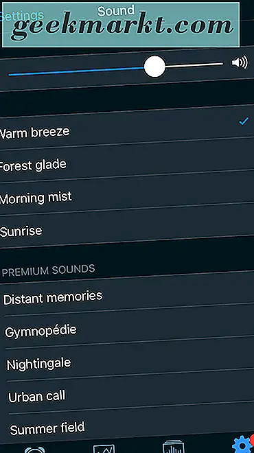 Cara aplikasi dapat menentukan ini bahkan sebelum memulai aplikasi / alarm di malam hari, Anda diminta untuk memastikan ponsel diletakkan di samping Anda di tempat tidur, menghadap ke bawah. Ini akan membantu aplikasi untuk merasakan dan mengidentifikasi ketika Anda berada dalam tidur nyenyak atau terang berdasarkan gerakan tubuh Anda. Aplikasi ini juga menggunakan mikrofon dan kemampuan getaran ponsel untuk mendapatkan pemahaman terbaik tentang pola tidur Anda. Selain itu, pastikan ponsel Anda dicolokkan saat aplikasi ini aktif karena dapat menjadi babi baterai yang nyata karena bekerja sepanjang malam untuk melacak tidur Anda. Suara yang dapat Anda pilih untuk bangun juga cukup santai dan menyejukkan juga, bukan bunyi bip mengerikan yang dimiliki oleh kebanyakan jam alarm.