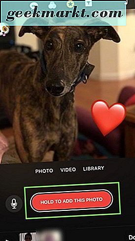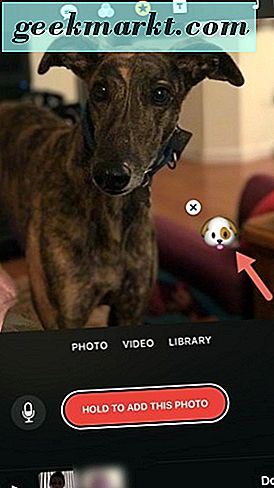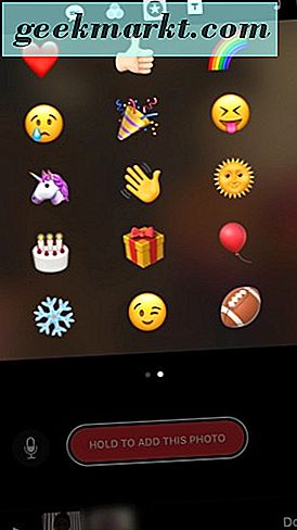 - Anda dapat menambahkan sebanyak mungkin emoji yang Anda suka ke klip Anda. Setelah Anda puas dengan pilihan emoji Anda, tahan tombol merah yang bertuliskan Tahan untuk menambahkan foto pada layar iPhone Anda di aplikasi Klip.
