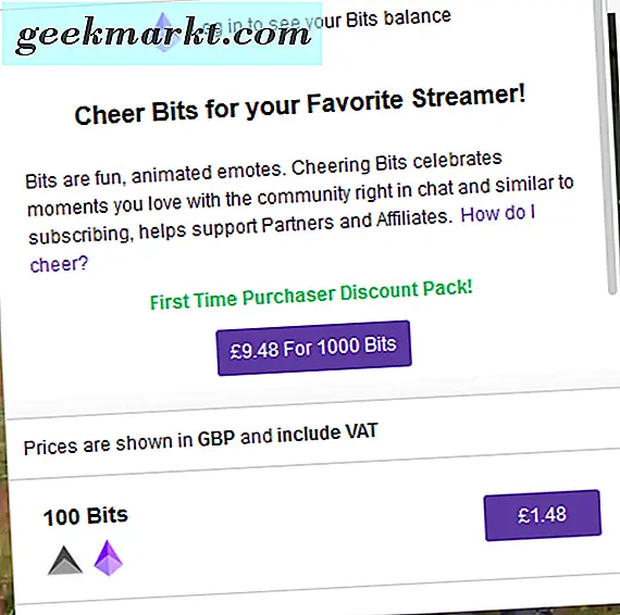 Bit adalah mata uang internal di Twitch. Anda membelinya dengan uang sungguhan dan Anda dapat memberi tip kepada streamer tertentu sejumlah Bits tertentu sebagai penghargaan atas pekerjaan mereka. Tipping disebut Cheering in Twitch ketika Anda menggunakan Bits. Ketika Anda Cheer, Anda menyumbangkan sejumlah Bits. Sumbangan disebut sebagai Tips tetapi mereka bekerja secara berbeda dan dilihat berbeda oleh streamer dan pengguna.