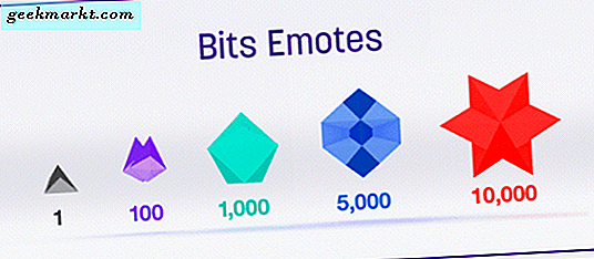 Jika Anda menyumbangkan Bits, Anda mendapatkan emotes sebagai hadiah. Mereka dibayar ketika Anda bersorak dengan 1, 100, 1.000, 5.000, dan 10.000 Bits dan datang dalam berbagai bentuk dan ukuran. Semakin banyak Anda Cheer, semakin baik emote. Anda juga mendapatkan Cheer Chat Badges yang menunjukkan kepada pengguna lain di saluran tersebut bahwa Anda adalah seorang pendukung.