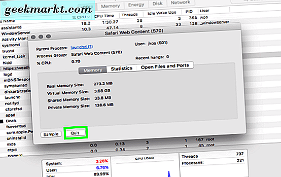Activity Monitor adalah tempat untuk mencari tahu apa yang terjadi di dalam Mac. Ini menunjukkan kepada Anda aplikasi apa yang telah Anda operasikan, sumber daya apa yang digunakan dan setiap aplikasi yang tidak responsif atau tidak berfungsi yang tidak selalu jelas dari desktop. Jika Anda tidak menyukai pintasan keyboard, Anda dapat memaksa keluar dari Activity Monitor.
