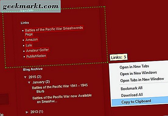 Salin Semua URL baik untuk menyalin beberapa URL dari bilah alamat, tetapi Anda tidak dapat menyalin beberapa hyperlink dengan itu. Anda tidak perlu ekstensi untuk menyalin URL hyperlink di Chrome, karena Anda dapat melakukannya dengan mengklik kanan dan memilih Salin alamat tautan . Namun, Anda tidak dapat menyalin pilihan beberapa tautan dengan opsi itu. Linkclump adalah ekstensi untuk Chrome dan Opera yang memungkinkan Anda untuk memilih dan menyalin sekelompok hyperlink dari suatu halaman.