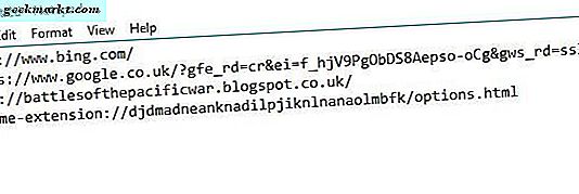 Lalu lepaskan tombol Shift dan tombol mouse. Buka Notepad lagi dan tekan Ctrl + V untuk menempel URL hyperlink yang disalin ke dalam editor teks seperti langsung di bawah ini. Itu menempelkan URL dengan judul mereka.