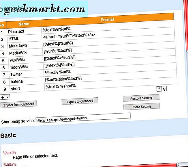 Pilih Pengaturan pada menu Tautan Api untuk membuka halaman di bawah ini. Di sana Anda dapat mengonfigurasi lebih lanjut setiap salinan pilihan. Misalnya, untuk menghapus judul halaman dari URL teks biasa, Anda harus mengganti formatnya ke% url% dengan menghapus% teks% \ n dari itu. Maka itu akan menyalin URL tanpa judul.