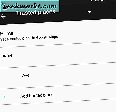 - Tempat tepercaya: Tentu, itu adalah satu hal untuk menjaga ponsel Anda tetap terkunci ketika Anda berada di luar kota, tetapi bagaimana ketika Anda sedang duduk di apartemen Anda menonton Netflix dan Anda hanya ingin dapat menggunakan ponsel tanpa terus khawatir tentang kata sandi Anda? Tempat tepercaya berfungsi menggunakan GPS di ponsel Anda untuk mendeteksi bahwa Anda berada di lokasi aman yang Anda pilih, dan secara otomatis membuat ponsel Anda tetap terbuka kuncinya untuk Anda. Segera setelah Anda meninggalkan lokasi Anda, ponsel Anda mengunci kembali, menjaga keamanan dan keamanan untuk Anda dan perangkat Anda.