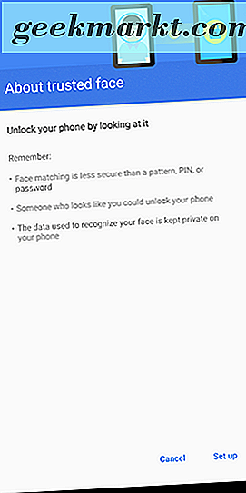 - Wajah tepercaya: Banyak ponsel memiliki fitur membuka kunci wajah, meskipun tidak ada satu pun yang cukup seaman metode FaceID pada iPhone X. Namun, jika Anda mau, Anda dapat mengaktifkan Wajah Tepercaya pada perangkat Anda untuk memungkinkan kamera Anda untuk membuka kunci ponsel Anda secara otomatis saat mengenali Anda. Namun, Wajah Tepercaya jauh lebih mudah dibodohi daripada metode di atas, terutama karena foto Anda — atau bahkan mirip-mirip — dapat membuka kunci ponsel Anda tanpa harus menggunakan keamanan apa pun. Gunakan ini dengan hati-hati.