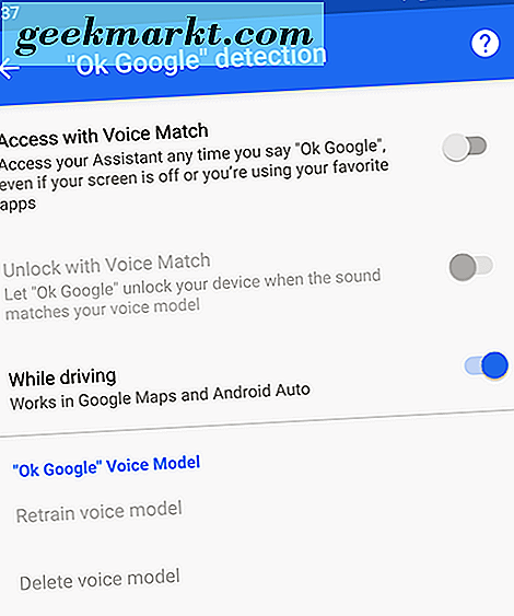 - Pencocokan Suara: Pencocokan Suara sedikit berbeda dari opsi lain di daftar ini, karena secara umum, ini digunakan untuk mengaktifkan Asisten Google lebih dari membuka kunci perangkat Anda. Inilah kesepakatannya: mengaktifkan Voice Match memungkinkan Anda mengakses Asisten Google Anda setiap kali Anda mengatakan "OK Google, " bahkan ketika layar mati. Setelah Anda mengaktifkan ption tersebut, Anda memiliki pilihan kedua: "Buka Kunci dengan Pencocokan Suara, " yang memungkinkan Anda untuk membuka kunci telepon secara otomatis saat bunyi suara Anda mengatakan "OK Google" cocok dengan model suara yang disimpan di perangkat Anda.