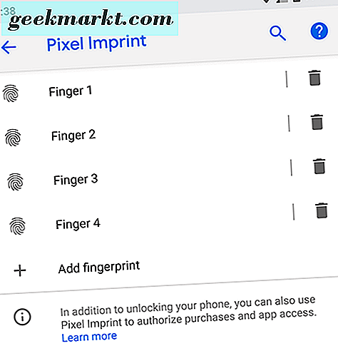 Hampir setiap perangkat Android pada tahun 2018 memiliki sensor sidik jari yang dipasang di badan perangkat, memungkinkan Anda mengakses konten dengan mudah tanpa harus repot memasukkan kode sandi Anda setiap kali Anda menggunakan ponsel. Sidik jari bukanlah metode pembukaan kunci yang sempurna, tetapi mereka cepat, aman, dan dapat dilengkapi dengan hingga empat entri sidik jari di sebagian besar ponsel. Jika Anda tidak menggunakan sensor sidik jari pada perangkat Anda, Anda harus mengaktifkannya jika hanya untuk membuat opsi cadangan. Bahkan jika Anda lebih suka membuka kunci ponsel dengan menggunakan metode buka kunci seperti PIN, pola, atau kata sandi, sidik jari sempurna jika Anda berada dalam bahaya secara tidak sengaja mengunci perangkat tanpa mengetahui kata sandi yang tepat.