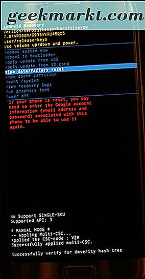 Setelah Anda masuk ke mode pemulihan, gunakan volume perangkat Anda dan tombol volume bawah untuk menggulir daftar sampai Anda mencapai "Hapus Data / Penyetelan Pabrik." Gunakan tombol daya untuk memilih opsi ini, kemudian konfirmasikan pilihan Anda di berikutnya tampilan. Ponsel Anda akan mulai diatur ulang; pastikan ponsel diisi cukup untuk memastikan dapat bertahan setidaknya 30 menit tanpa mengalami kematian. Setelah ponsel Anda reboot kembali ke layar menu, Anda dapat mengatur perangkat Anda dengan login kembali ke akun Google yang Anda gunakan untuk ponsel Anda. Sangat penting Anda menggunakan akun Google yang sama dengan yang Anda gunakan di ponsel Anda sebelum mengatur ulang. Android memiliki protokol keamanan internal yang dikenal sebagai Factory Reset Protection yang mengharuskan ponsel yang baru saja di-reset untuk memiliki akun Google yang sama seperti sebelumnya digunakan pada perangkat untuk mencegah pencuri dari segera menggunakan ponsel yang dicuri. Jika Anda tidak memiliki kata sandi untuk akun Google Anda, Anda dapat mengatur ulang, tetapi itu berarti Anda tidak akan dapat masuk ke ponsel Anda selama 24 jam setelah reset.