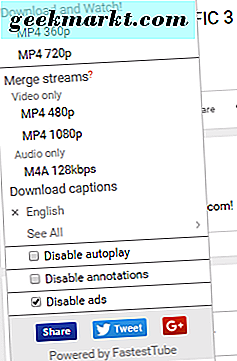 Ketika Anda membuka video YouTube baru, Anda akan melihat tombol Unduh telah ditambahkan ke video, yang dapat Anda klik untuk membuka menu yang memungkinkan Anda mengunduh video dalam format audio dan video. Jika Anda ingin menyimpan seluruh video dengan audio dan video, Anda dapat menyimpan video dalam format 360p atau 720p dalam format MP4. Jika Anda ingin menyimpan video dalam kualitas yang lebih tinggi — katakanlah, untuk digunakan dalam pembuatan video Anda sendiri — Anda akan ingin mengunduh video 1080p hanya menyalin bersama dengan aliran audio M4A berkualitas tinggi sebelum menyinkronkan dua bagian kembali bersama dalam perangkat lunak pengeditan pilihan Anda.