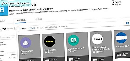 Arsip Audio adalah bagian dari proyek Arsip Internet yang berusaha menyimpan salinan segala sesuatu dari web. Itu termasuk sejumlah besar musik bebas royalti. Anda harus sedikit lebih berhati-hati di situs ini karena tidak semuanya dicakup oleh Creative Commons. Namun, kisarannya sangat luas sehingga tidak akan ada gunanya bagiku untuk tidak memasukkannya di sini.